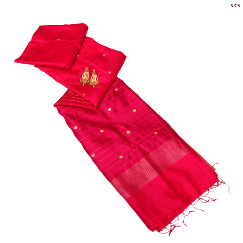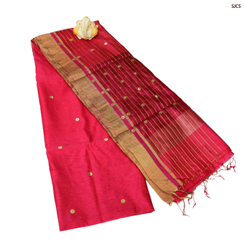 This saree has two tones, causing its colour to appear different when viewed from various angles.