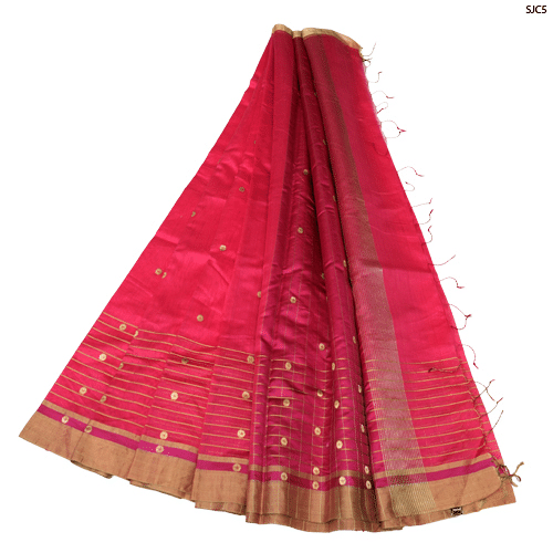 The product is hand woven. Thread pulling, thread missing, weaving holes, small glue marks and white weaving Marks are common in handloom sarees and are not considered as damage. These irregularities are what make the handwoven or hand printed saree unique.
